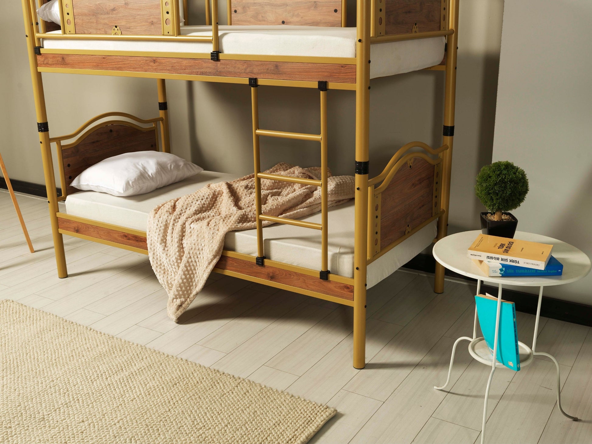 Ürün paslanmaz profil malzemeden imal edilmiştir. Baş ve ayak uçları ile üst kat koruma demirleri ahşap malzeme ile doldurulmuştur. |