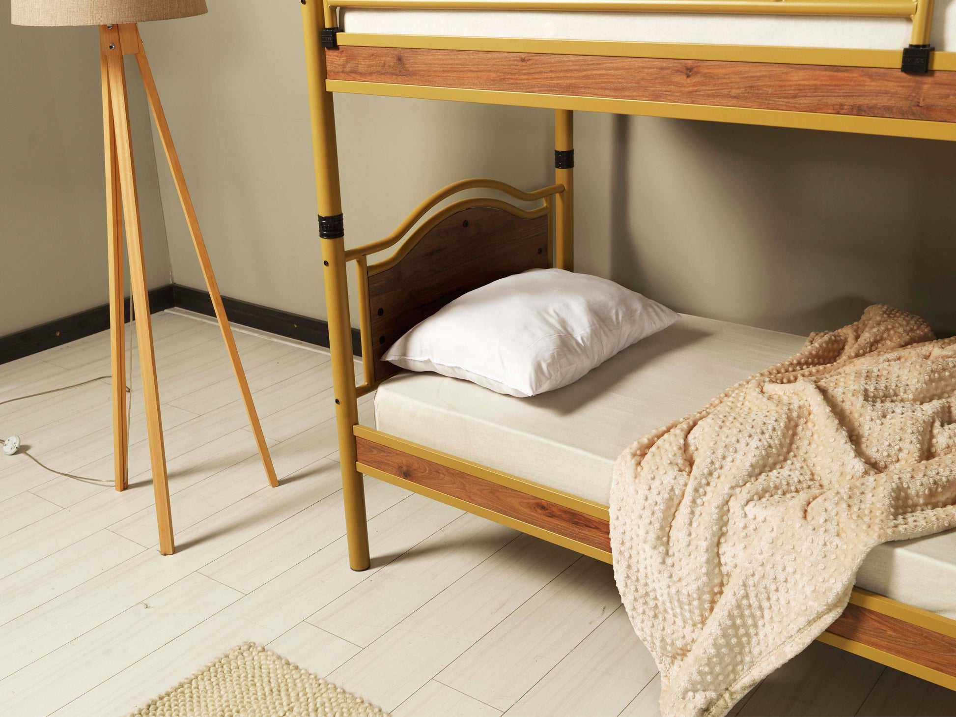Ranza, birleşim yerlerinden ayrılarak iki adet tek kişilik karyola formunda kullanılabilir. Statik metal boyası kullanılarak püskürtme metodu ile boyanmıştır. Normal bir kullanım ile ömürlük kullanım amaçlanmıştır. Otel, yurt, pansiyon gibi kaba kullanım gerçekleştiren mekanlar için gerekli dayanıklılığa sahip malzemeden imal edilmiştir. Görseldeki ürün dışında bir renk talebiniz var ise bunun için irtibata geçiniz. Her renk ürün, her dönem üretimde olmayabilir. |