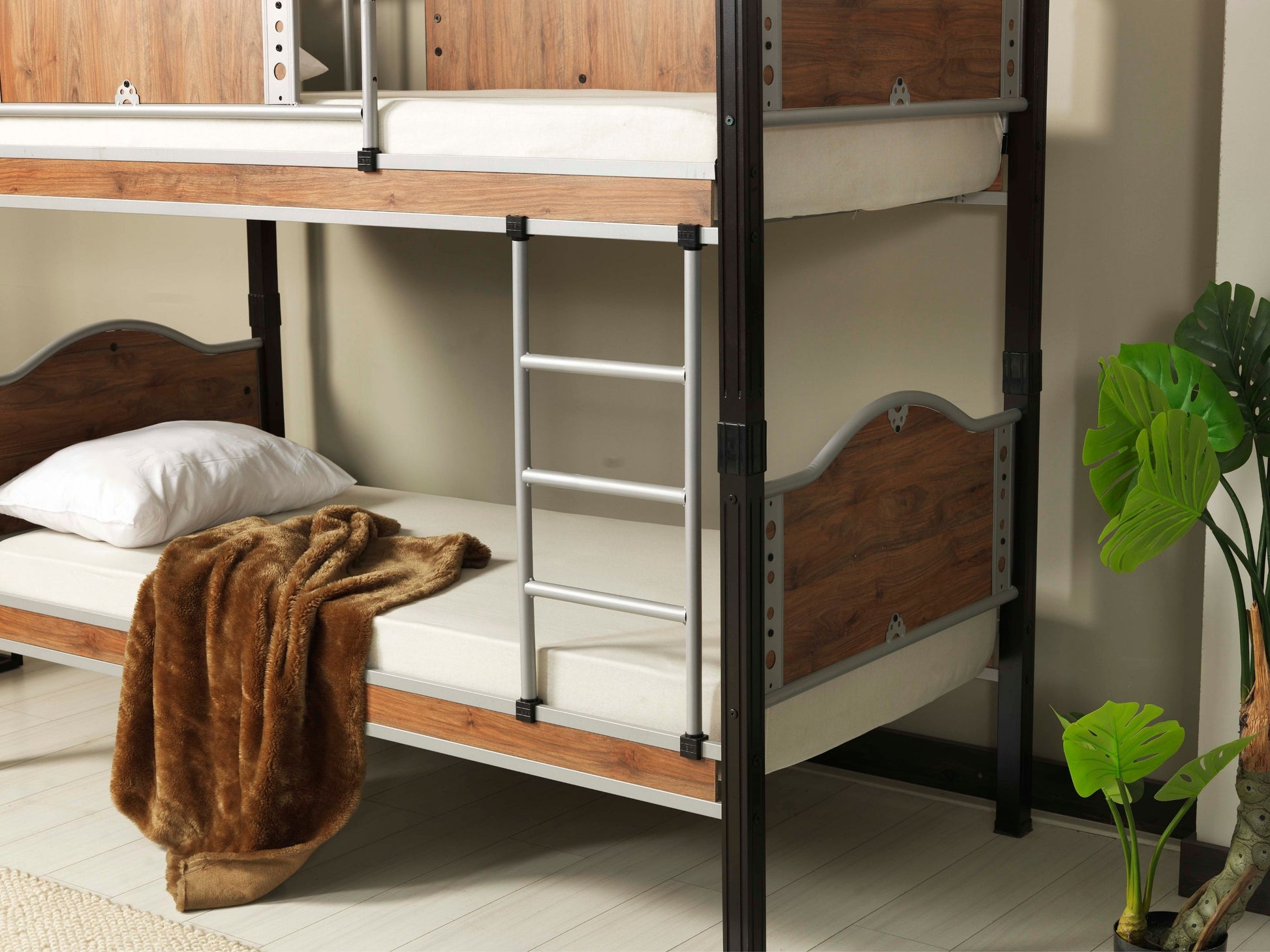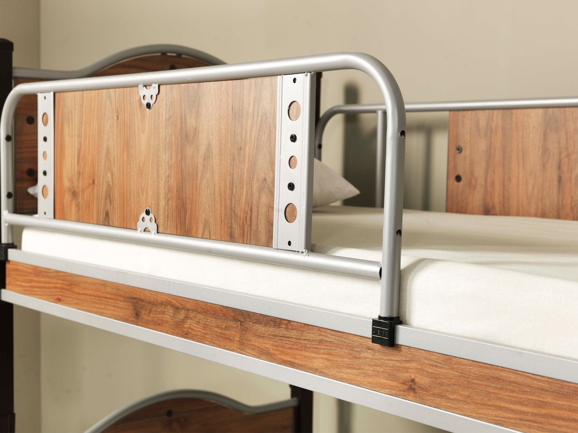 Ürün paslanmaz profil malzemeden imal edilmiştir. Baş ve ayak uçları ile üst kat koruma demirleri ahşap malzeme ile doldurulmuştur.