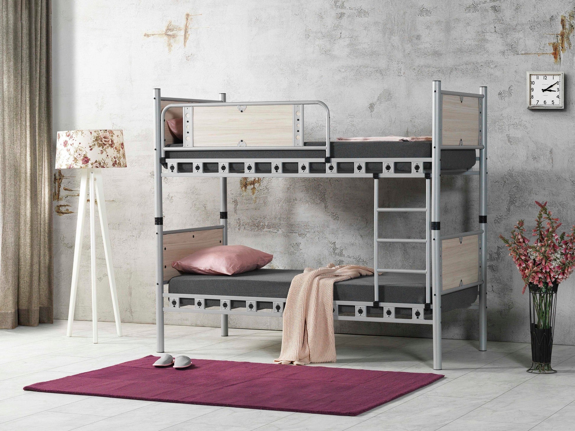 Ranza, birleşim yerlerinden ayrılarak iki adet tek kişilik karyola formunda kullanılabilir. Statik metal boyası kullanılarak püskürtme metodu ile boyanmıştır. Normal bir kullanım ile ömürlük kullanım amaçlanmıştır. Otel, yurt, pansiyon gibi kaba kullanım gerçekleştiren mekanlar için gerekli dayanıklılığa sahip malzemeden imal edilmiştir. Görseldeki ürün dışında bir renk talebiniz var ise bunun için irtibata geçiniz. Her renk ürün, her dönem üretimde olmayabilir. |