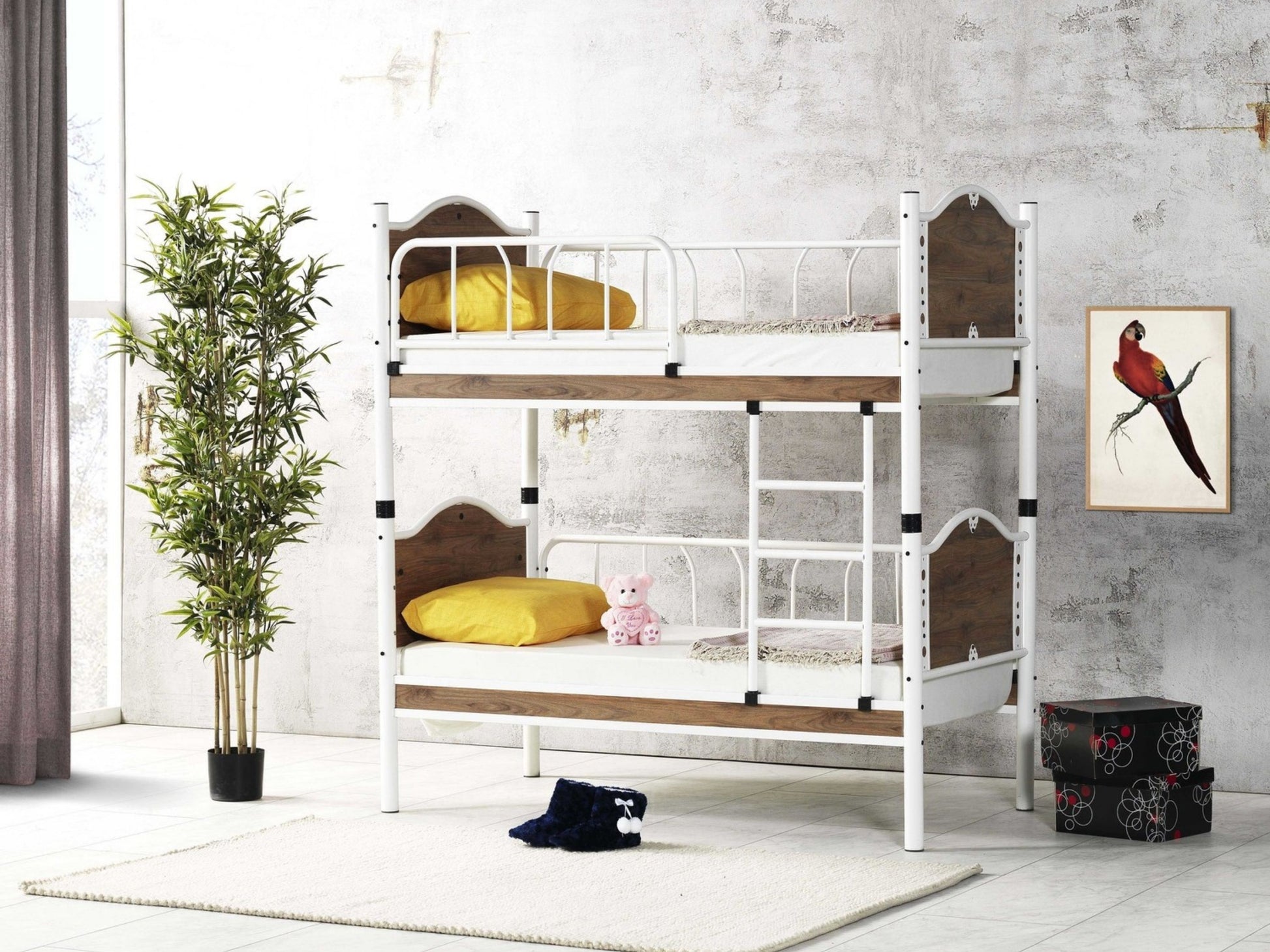 Ranza, birleşim yerlerinden ayrılarak iki adet tek kişilik karyola formunda kullanılabilir. Statik metal boyası kullanılarak püskürtme metodu ile boyanmıştır. Normal bir kullanım ile ömürlük kullanım amaçlanmıştır. Otel, yurt, pansiyon gibi kaba kullanım gerçekleştiren mekanlar için gerekli dayanıklılığa sahip malzemeden imal edilmiştir. Görseldeki ürün dışında bir renk talebiniz var ise bunun için irtibata geçiniz. Her renk ürün, her dönem üretimde olmayabilir. |